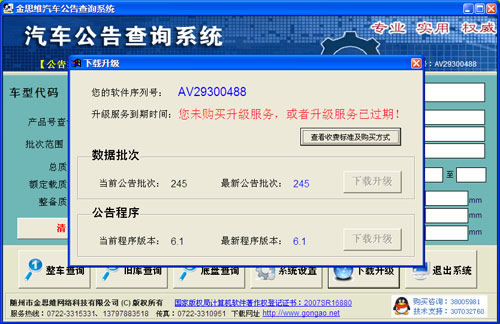 專業(yè),實用,權威!金思維《汽車公告查詢系統(tǒng)》是由隨州市金思維網(wǎng)絡科技有限公司于2005年10月獨立開發(fā)完成的(軟件著作權登記證書編號:2007SR16880),用于查詢全國各地車輛生產(chǎn)企業(yè)及車輛技術參數(shù)。近幾年,根據(jù)用戶的意見和建議,我們不斷對軟件進行改進和升級,使其功能更加完善、查詢更加方便: